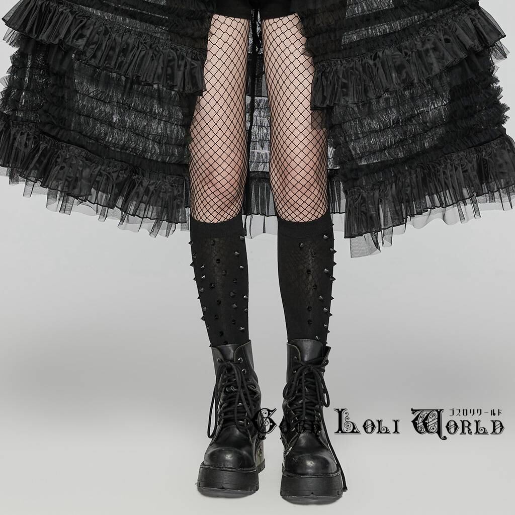 【即納/送料無料】WS-688JTF-BK ブラック スパイク コットン ハイソックス 黒色 ファッション ゴシック ゴスロリ パンク ロック ロリィタ ビジュアル系 V系 モード系 地雷系 | ゴスロリワールド