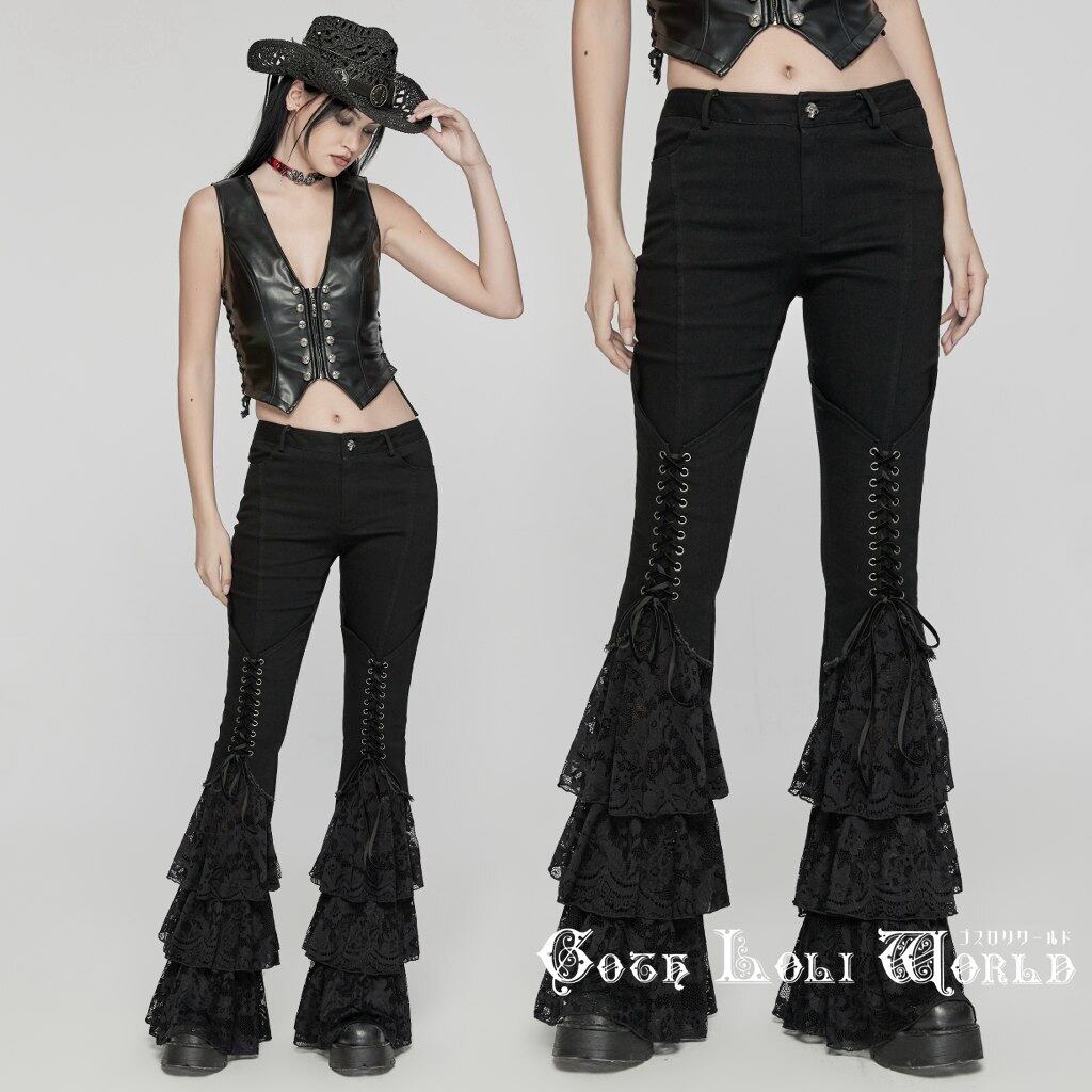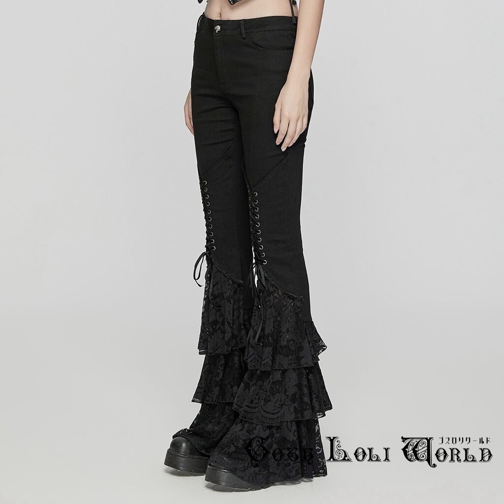 【即納/送料無料】WK-657NCF-BK デザインニーコルセットティアード フレアパンツ ファッション ゴシック ゴスロリ パンク ロック ロリィタ ビジュアル系 V系 モード系 地雷系 | ゴスロリワールド