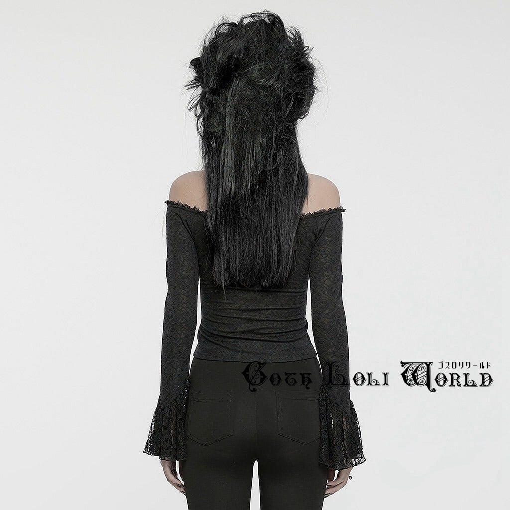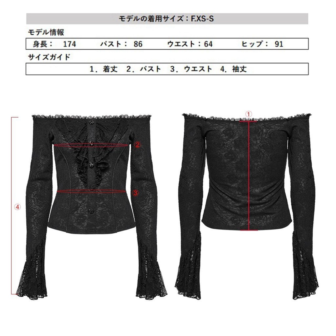 【即納/送料無料】WT-921TCF-BK オフショルダーレース姫袖飾りボタン カットソー ファッション ゴシック ゴスロリ パンク ロック ロリィタ ビジュアル系 V系 モード系 地雷系 | ゴスロリワールド