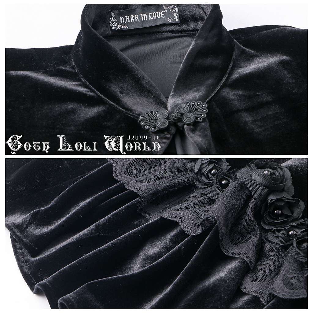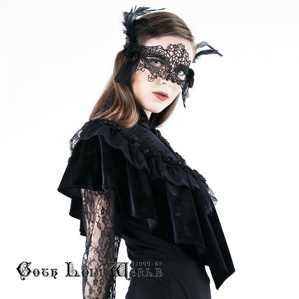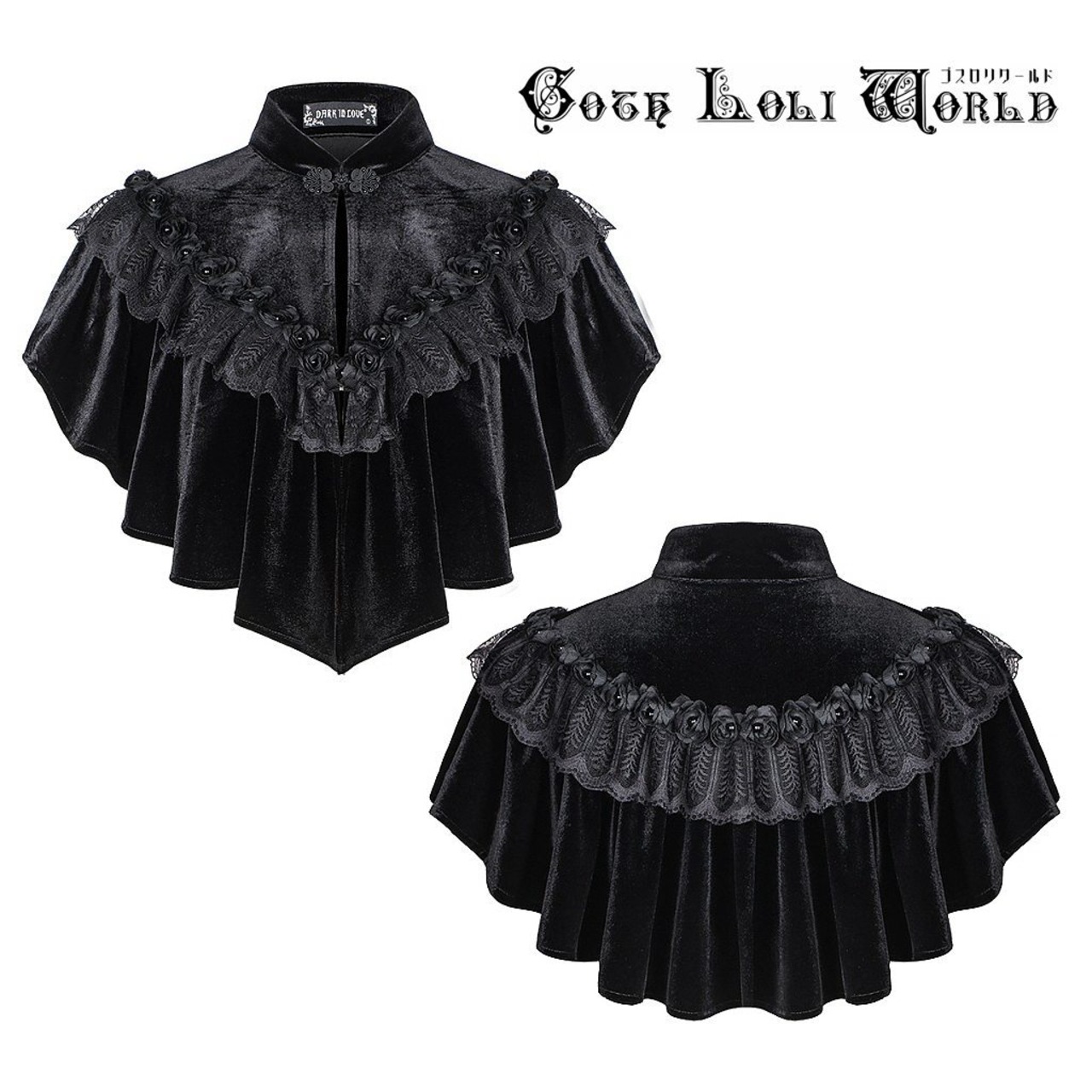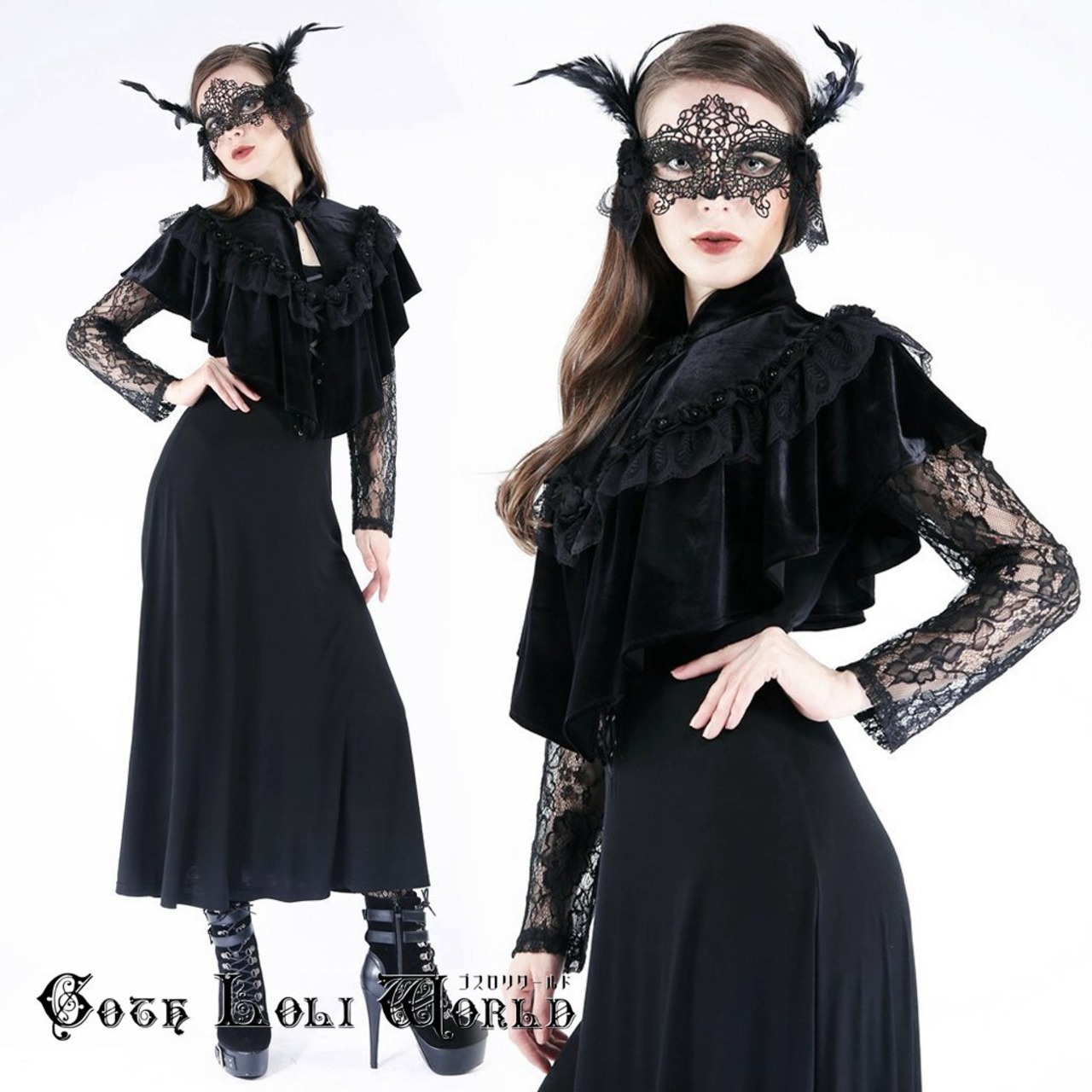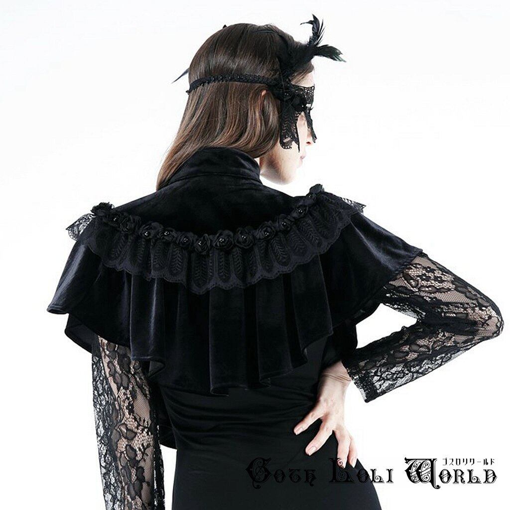 BW043 ローズレースベルベッドショート ケープ ファッション ゴシック ゴスロリ パンク ロック スチームパンク ビジュアル系 ヴィジュアル系 V系 モード系 地雷系 サブカル コスプレ ライブ ステージ 舞台 仮装 SM サイバー ハロウィン 衣装