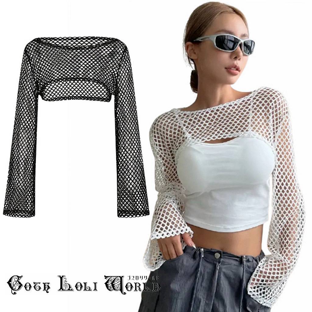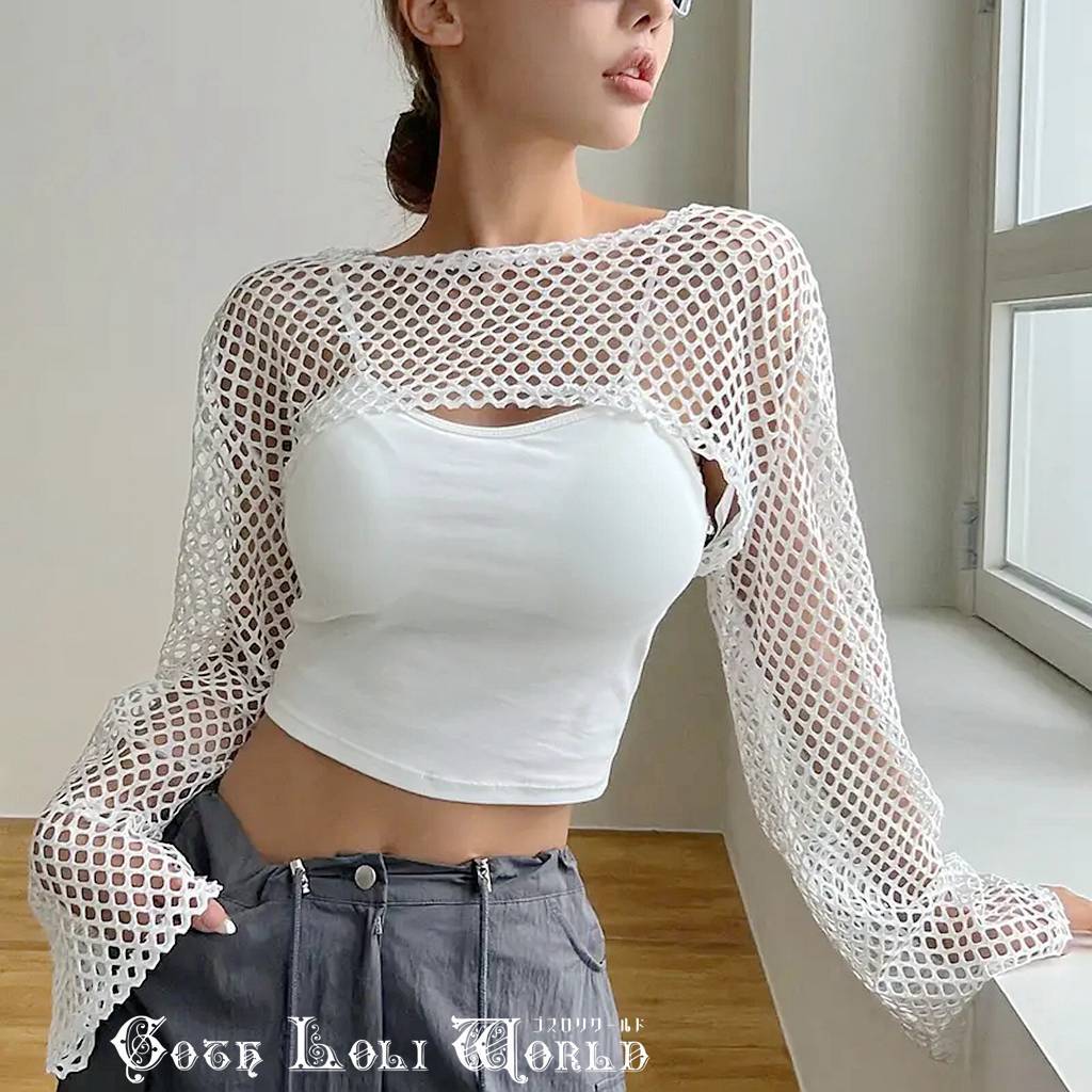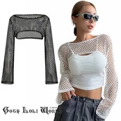 【即納/送料無料】CE-TT001 ホローアウトメッシュ長袖ショート ニット カットソー ファッション ゴシック ゴスロリ パンク ロック ロリィタ ビジュアル系 V系 モード系 地雷系 | ゴスロリワールド