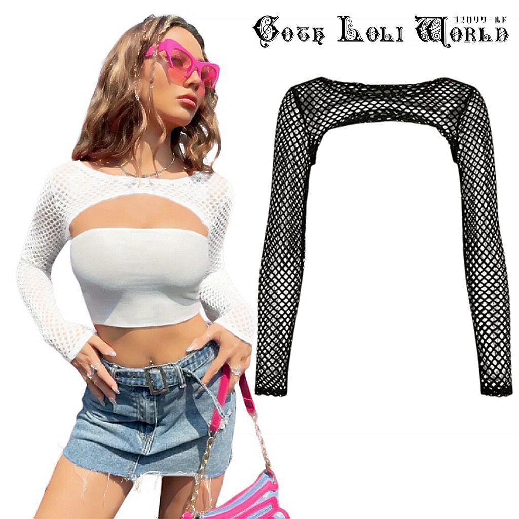 【即納/送料無料】CE-TT002 セクシーメッシュ長袖ショートニット カットソー ファッション ゴシック ゴスロリ パンク ロック ロリィタ ビジュアル系 V系 モード系 地雷系 | ゴスロリワールド