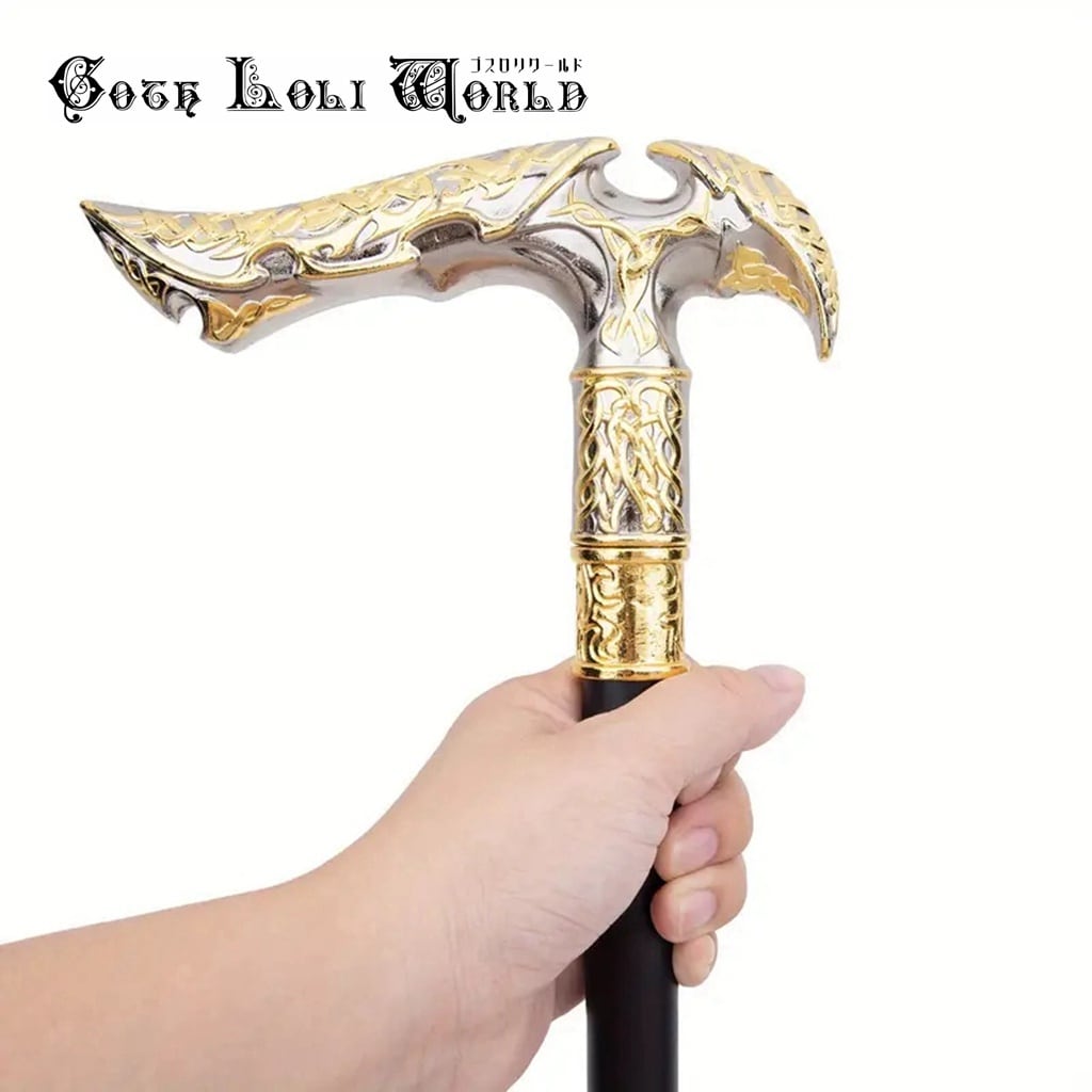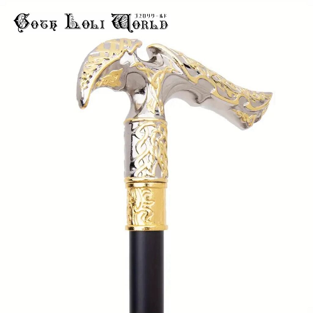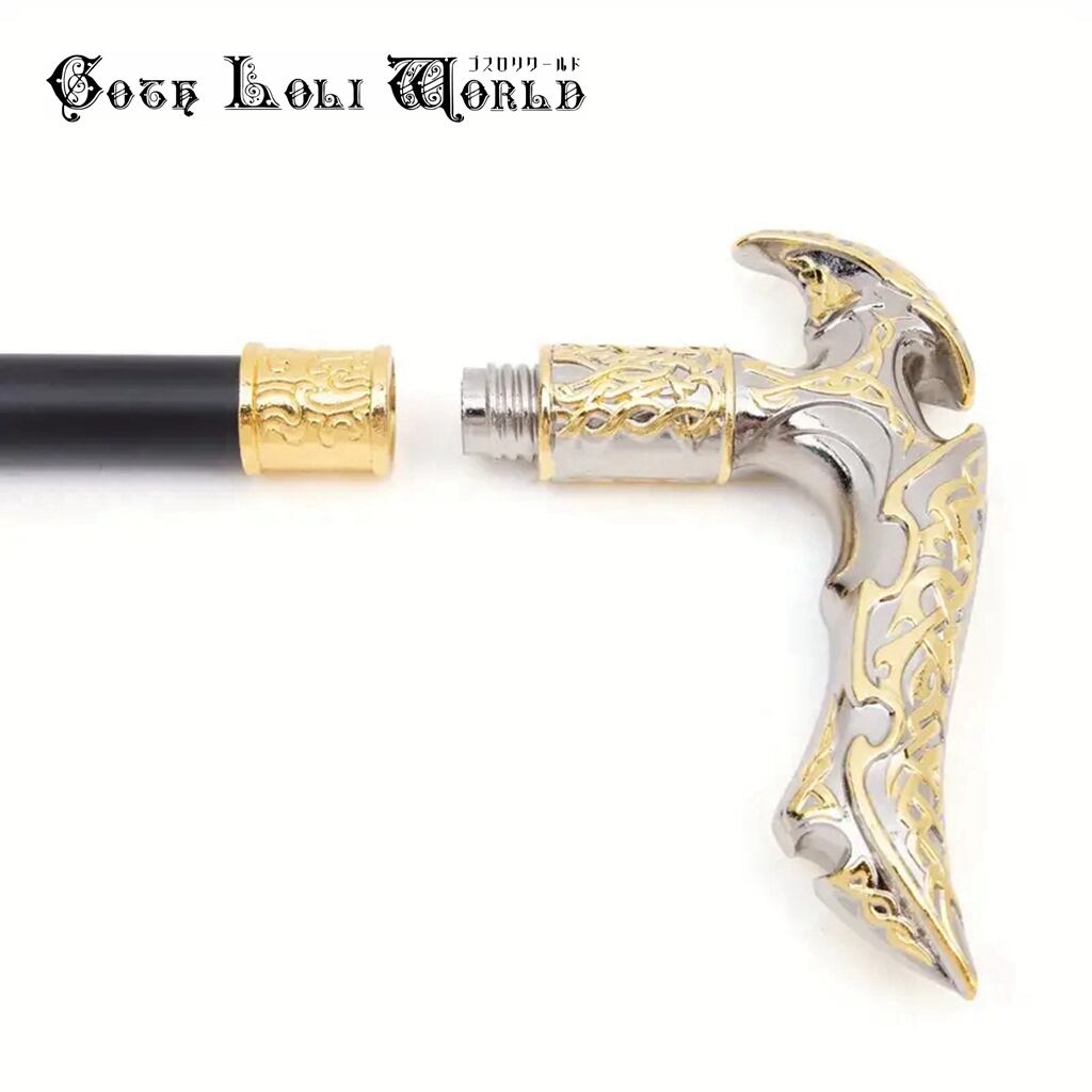 【即納/送料無料】AS032 ラグジュアリーウォーキングケイン ヴァンパイア ステッキ 魔法 杖 つえ 金銀色 高級 金属 ファッション ゴシック ゴスロリ パンク ロック スチームパンク モード系 地雷系 | ゴスロリワールド