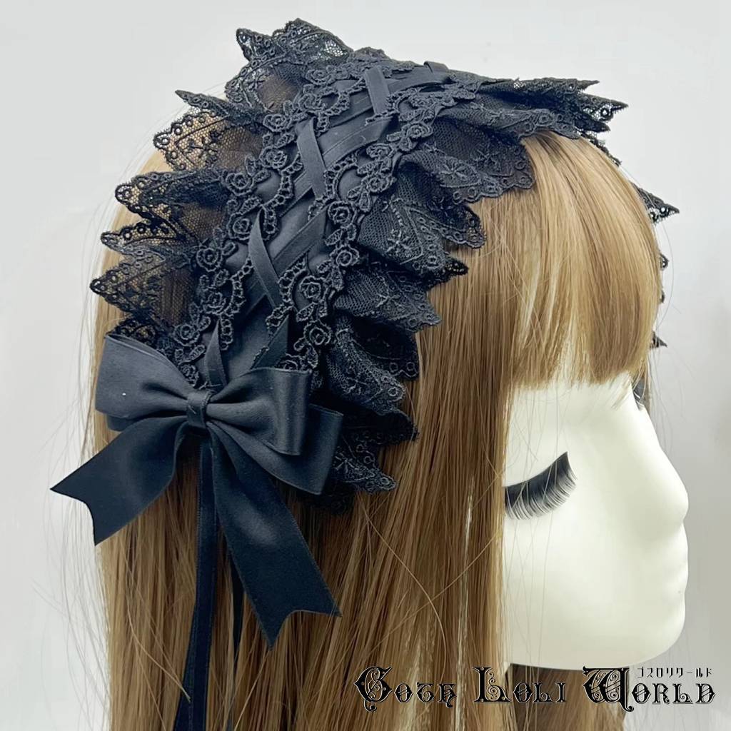 【即納/送料無料】CE-AS017 ロリータ花柄レースヘッドバンドメイド ヘッドドレス 黒色 ファッション ゴシック ゴスロリ パンク ロック ロリィタ ビジュアル系 V系 モード系 地雷系 | ゴスロリワールド