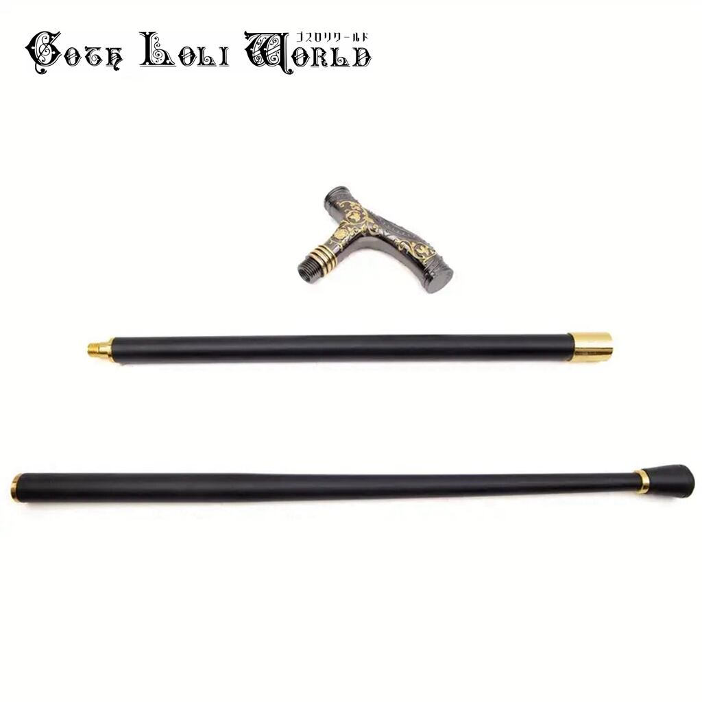 【即納/送料無料】AS035 ゴールド花柄 紳士 ステッキ 魔法 杖 つえ 黒金色 高級 金属 ファッション ゴシック ゴスロリ パンク ロック スチームパンク ビジュアル系 V系 モード系 地雷系 | ゴスロリワールド