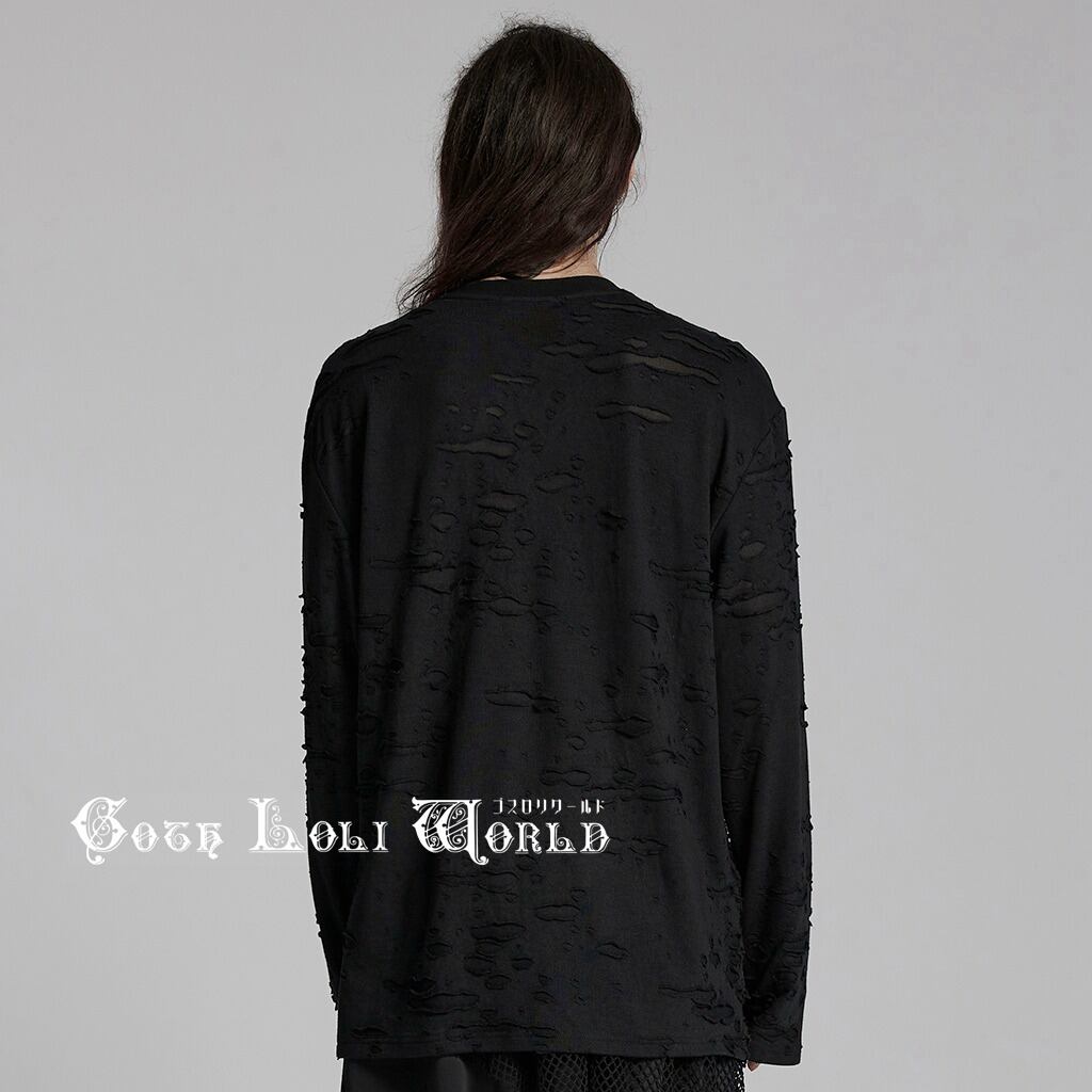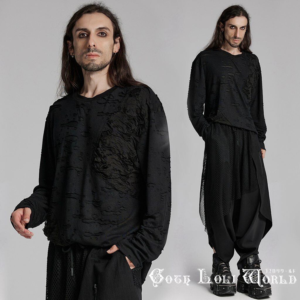 【即納/送料無料】WT-929TCM-BK シアーホローアウトドロップショルダー長袖 カットソー メンズ ファッション ゴシック ゴスロリ パンク ロック ロリィタ ビジュアル系 V系 モード系 地雷系 | ゴスロリワールド