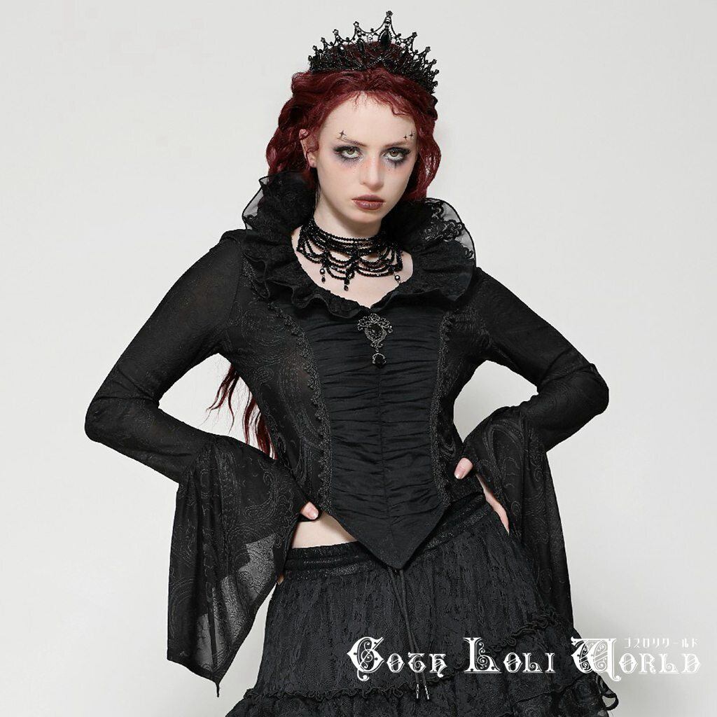 TW531 レースショールカラー カットソー ファッション ゴシック ゴスロリ パンク ロック スチームパンク ビジュアル系 ヴィジュアル系 V系 モード系 地雷系 サブカル コスプレ ライブ ステージ 舞台 仮装 SM サイバー ハロウィン 衣装