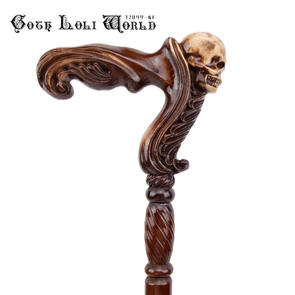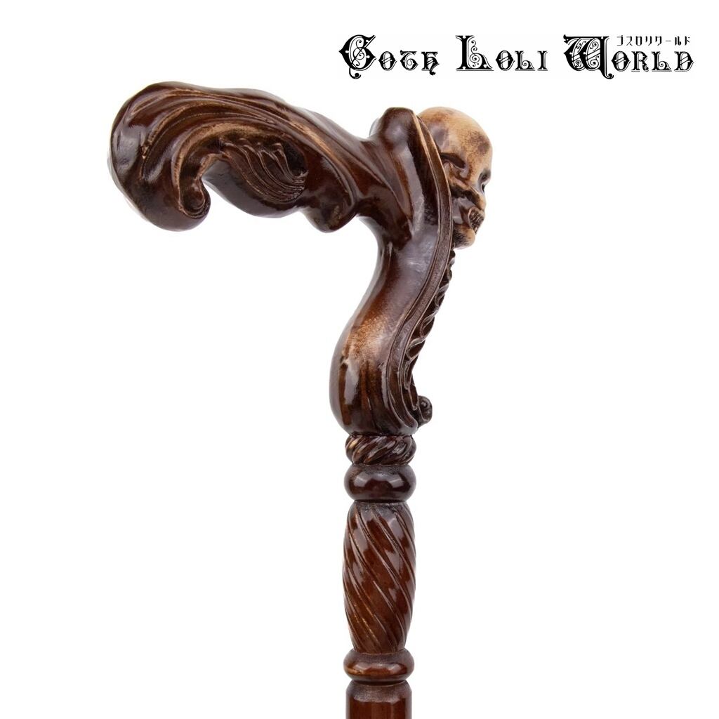 【即納/送料無料】TUE009 スカル 髑髏 紳士 ステッキ 杖 つえ ゴールド 木製 高級 金属 杖 つえ ファッション ゴシック ゴスロリ パンク ロック スチームパンク ビジュアル系 V系 モード系 地雷系 | ゴスロリワールド