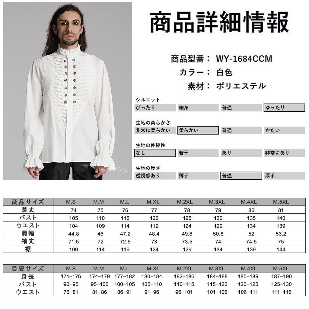【即納/送料無料】ゴスロリワールド WY-1684CCM-WH ゴシックファション フリル襟 ホワイト ブラウス 紳士 ジェントルマン 貴族 ヴィジュアル系 ライブ ステージ 舞台 仮装 衣装 | ゴスロリワールド