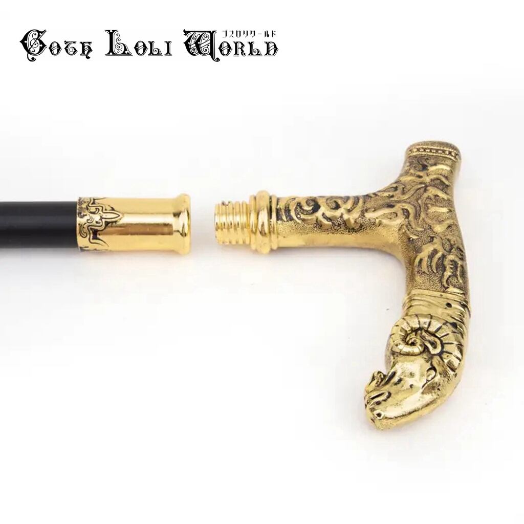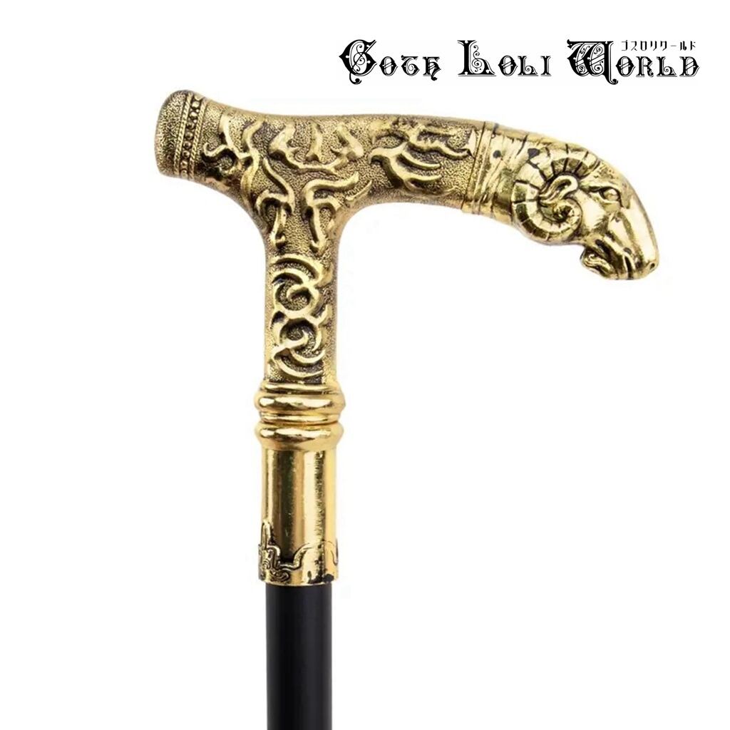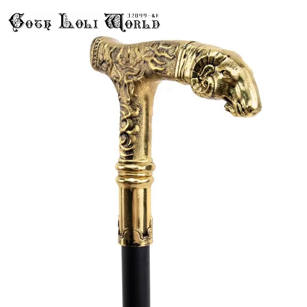 【即納/送料無料】即納 TUE011 羊 ヒツジ 紳士 ステッキ 杖 つえ アンティーク調金色 高級 金属 ファッション ゴシック パンク ロック ビジュアル系 ヴィジュアル系 V系 | ゴスロリワールド