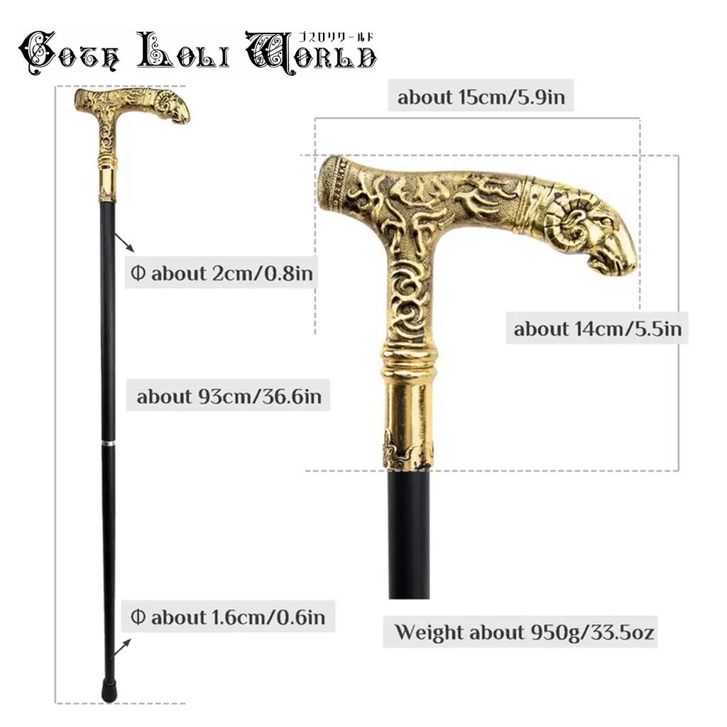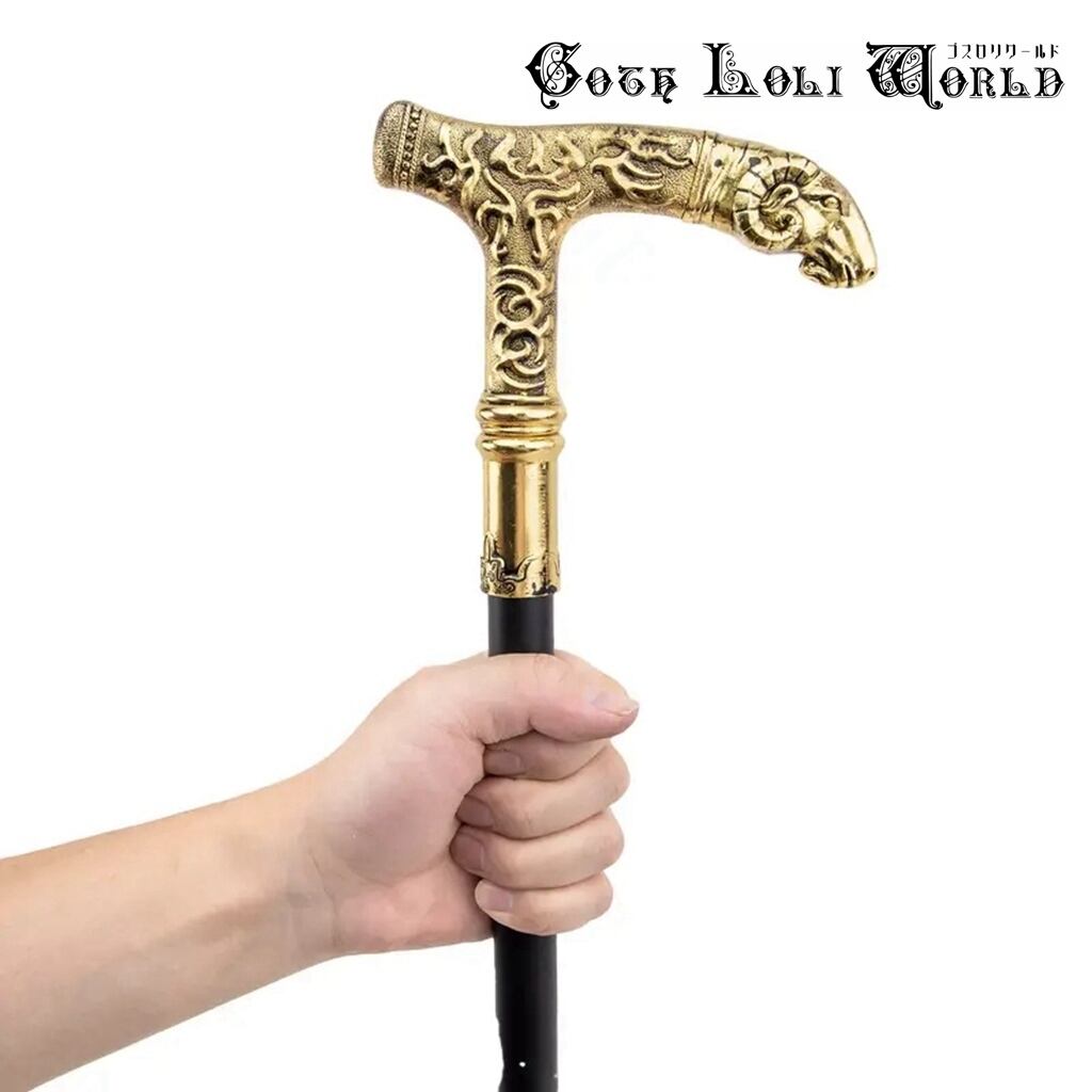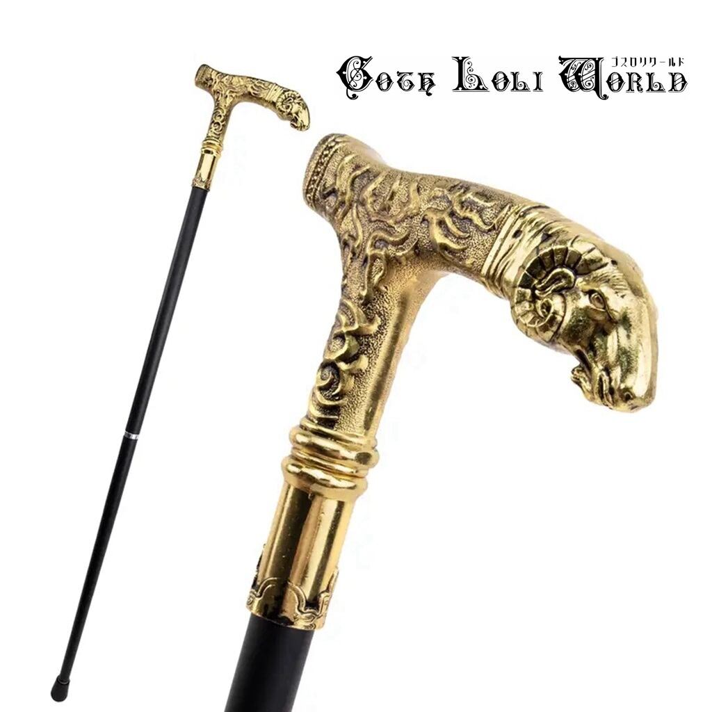 【即納/送料無料】即納 TUE011 羊 ヒツジ 紳士 ステッキ 杖 つえ アンティーク調金色 高級 金属 ファッション ゴシック パンク ロック ビジュアル系 ヴィジュアル系 V系 | ゴスロリワールド