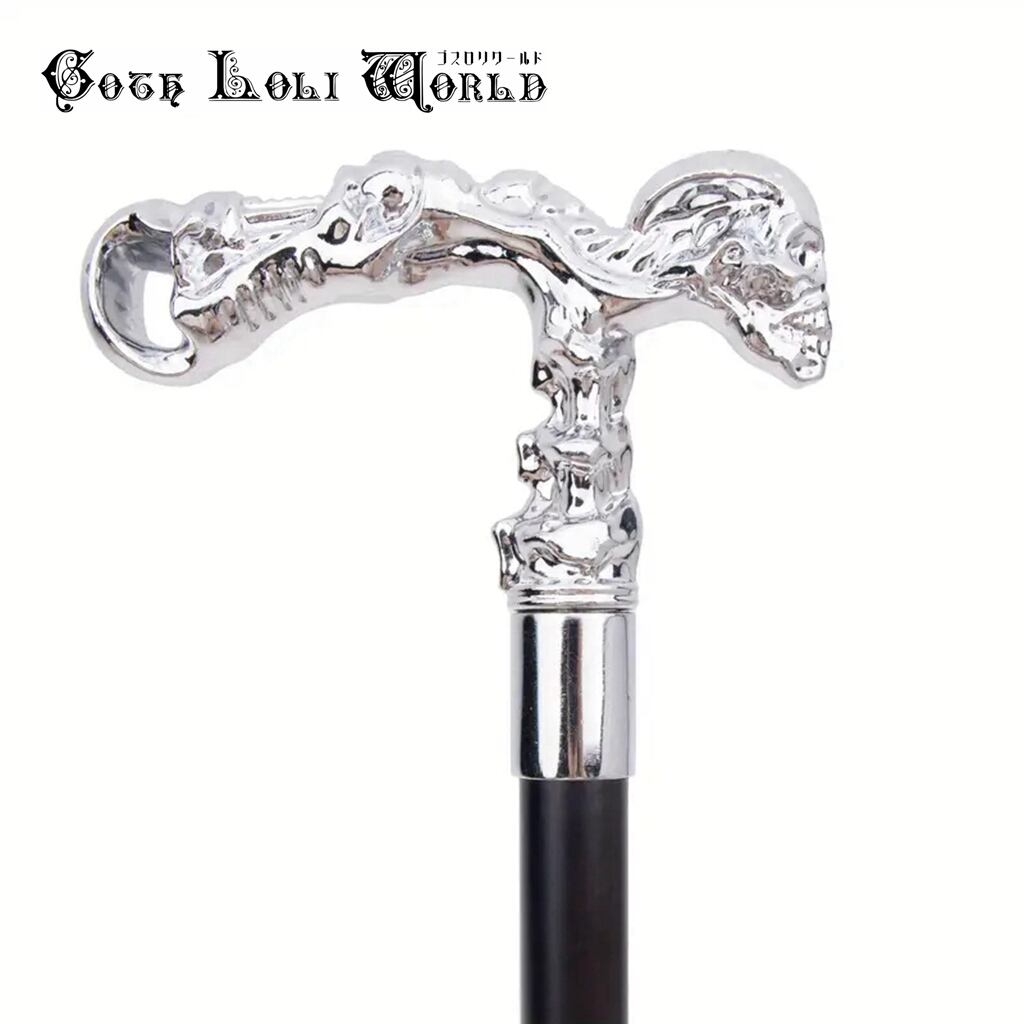 【即納/送料無料】即納 TUE015 スカルケイン T字杖 紳士 ステッキ 杖 つえ 銀色 高級 金属 ファッション ゴシック ビジュアル系 舞台 ステージ イベント 仮装 演劇 | ゴスロリワールド