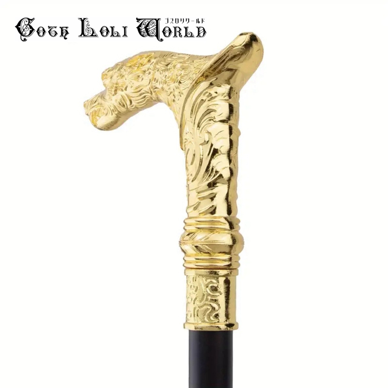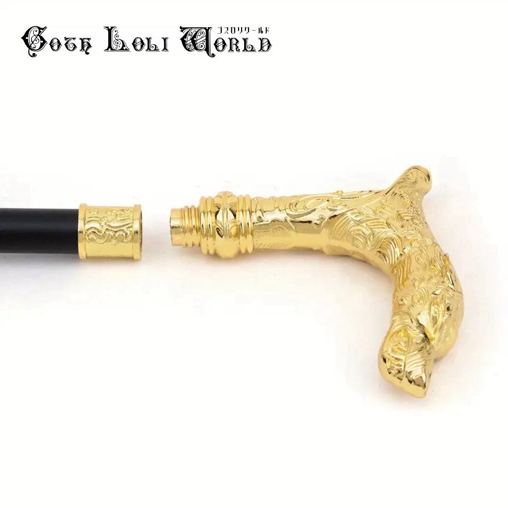【即納/送料無料】即納 TUE016 ゴールド狼 オオカミ 紳士 ステッキ 杖 つえ 金色 高級 金属 ファッション ゴシック ビジュアル系 舞台 ステージ イベント 仮装 演劇 | ゴスロリワールド