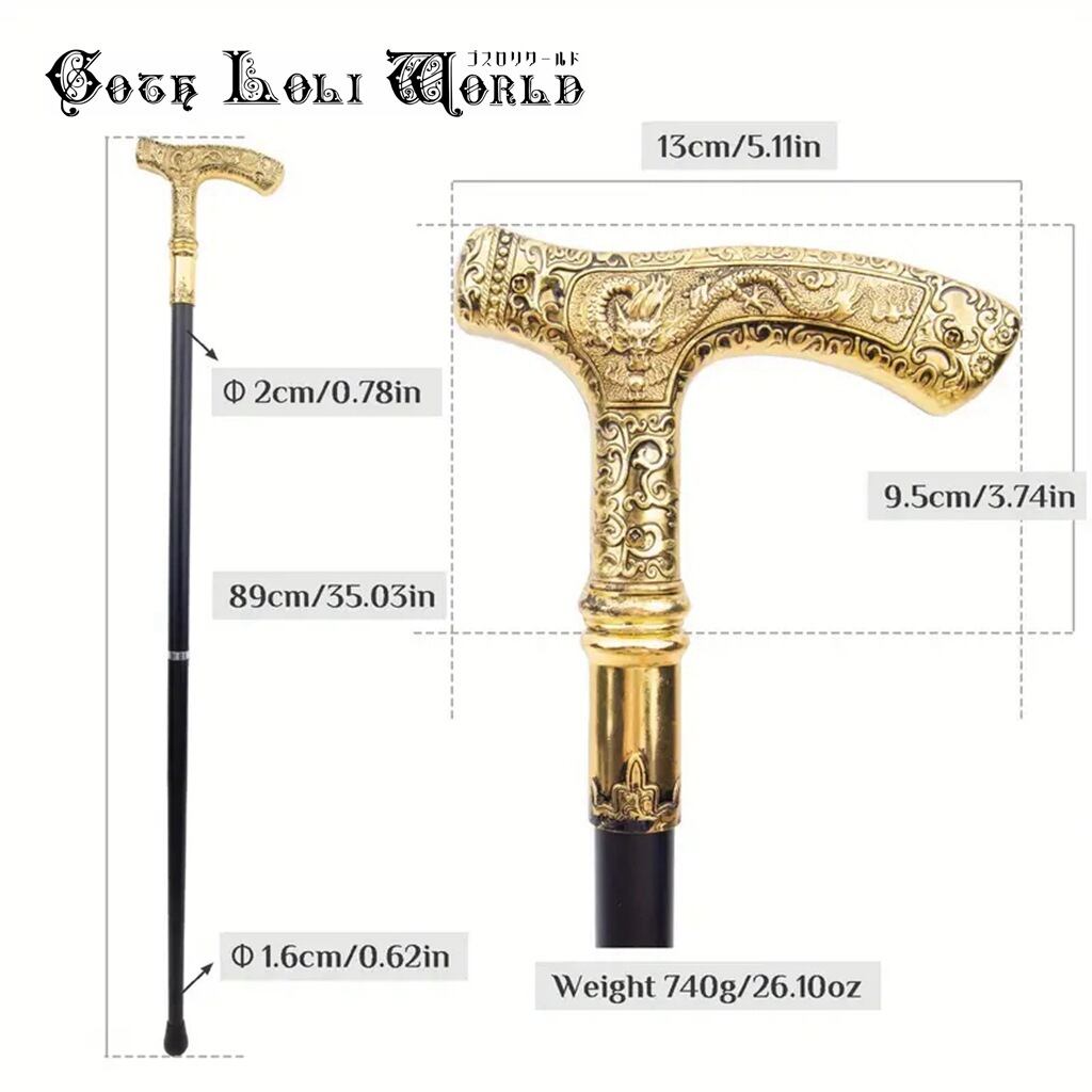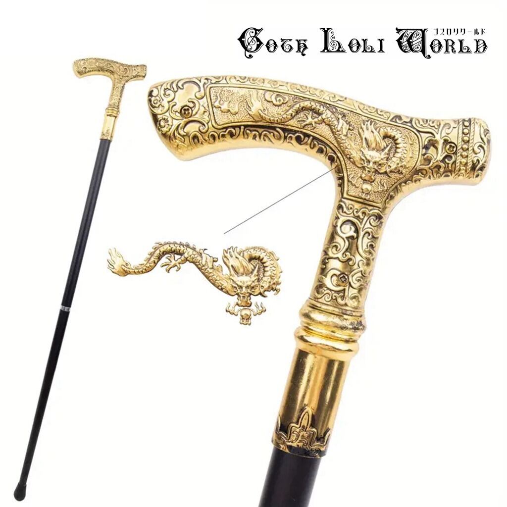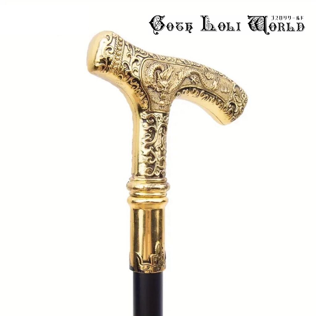 【即納/送料無料】即納 TUE017 金龍 ゴールド ドラゴン 紳士 ステッキ 杖 つえ 金色 高級 金属 ファッション ゴシック ビジュアル系 舞台 ステージ イベント 仮装 演劇 | ゴスロリワールド